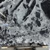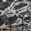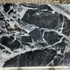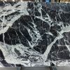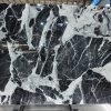 This product is a premium Bvlgari Crystal marble slab, featuring a deep black base with white veins flowing freely across the surface, creating a natural and unique abstract pattern reminiscent of a modern art piece. The high-gloss polished finish is smooth and refined, reflecting light in rich layers that enhance its tactile and visual allure.