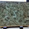 This product is a premium Bvlgari Green Marble slab, dominated by hues of dark green and teal, interwoven with deep brown, gray-black, and subtle light veins that form a natural, landscape-like flowing pattern. Mineral deposits create unique speckles and bands, giving each piece an exclusive texture. The surface is finely polished, smooth to the touch and highly reflective, capturing shifting layers of light and shadow with elegant brilliance.